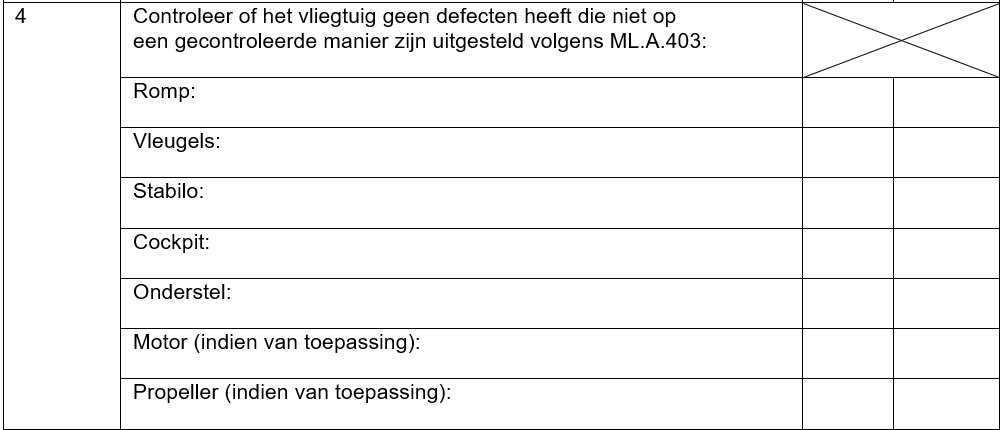 - Er mogen geen openstaande defecten meer staan op pagina 42 van het journaal of ze moeten op gepaste wijze zijn uitgesteld door de zweefvliegtechnicus.